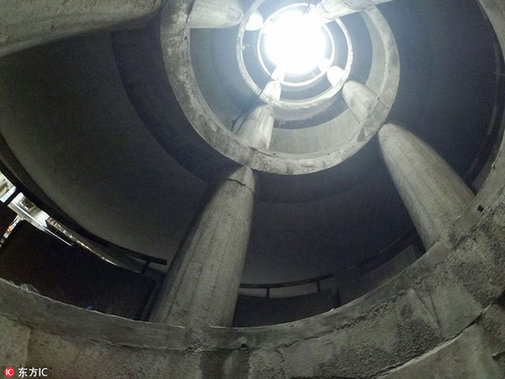 重庆,南岸某小区的停车库,需要从平街的公路下5层楼,连续转N个360度圈,司机惊呼要被转晕。