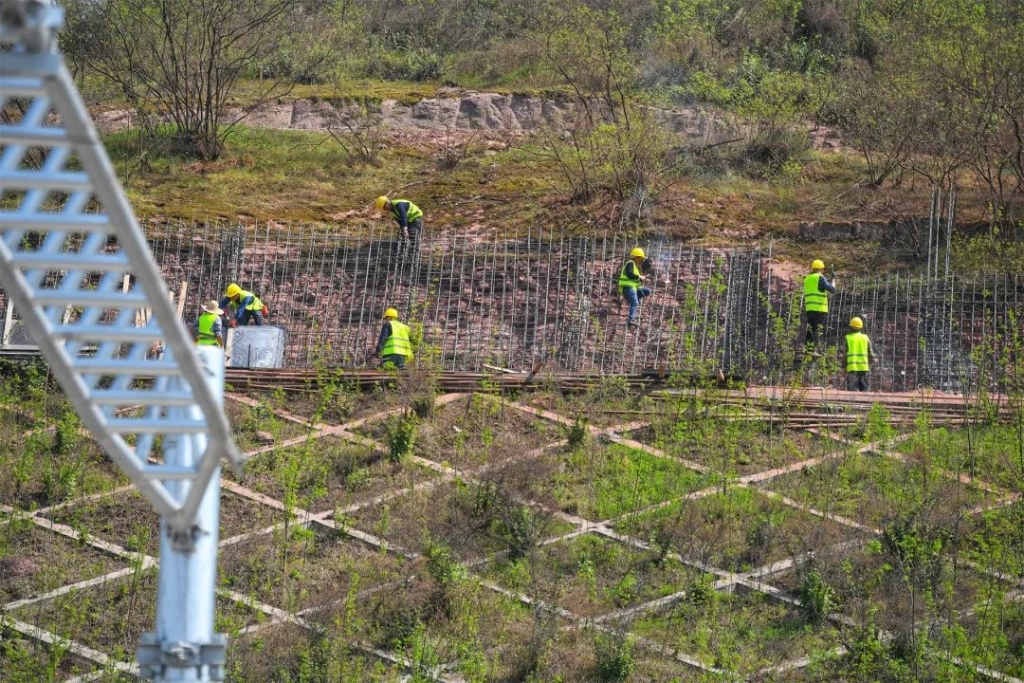 东港站工人正在进行边坡加固。通讯员 郭旭 摄