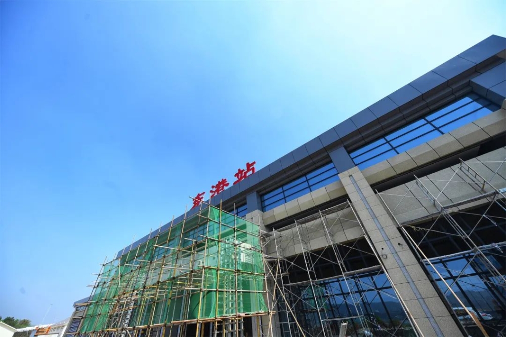 记者来到东港站站房工程施工现场看到,站房与站场已初见雏形,