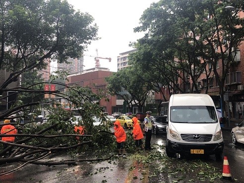 9时许,杨九路重庆市第十三人民医院附近,一棵大树受大雨影响突然倒塌,正好砸上过路的车辆。交巡警杨家坪大队大队长吴兵正好巡逻至此,见状立即上前询问车上人员安全情况,经核实无人受伤后便立即联系值班民警王伟和相关部门,共同开展抢险救援工作,经过快速处置,倒塌的大树枝叶被清除,不影响道路正常通行。