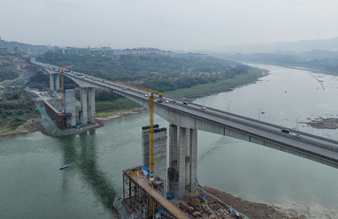 渝武高速拓宽改造工程迎新进展 马鞍石复线桥主桥墩顶